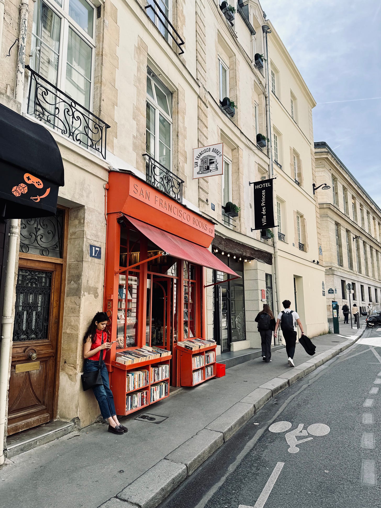 Fortunately, I found another bookstore in Paris that sold great books, the San Francisco Book Company in Saint Germain des Pres. The cadmen red window and matching door is purely Parisian yet hints at the iconic bridge and the American owner who suggested to me his book store was better than S & C. For a second hand bookstore I liked his bold statement and said, “well you would know”. It seemed right that I happened to be staying at the petite hotel next door on Rue Monsieur le Prince.